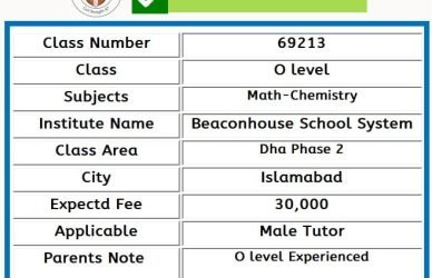 September 6, 2021 Home Tutor for O Level 6 Comments Home Tutor for O level in Dha Phase 2 Islamabad Whatsapp Parents can Call Only SMS Contact Us Home Tutor for O level ... Read More